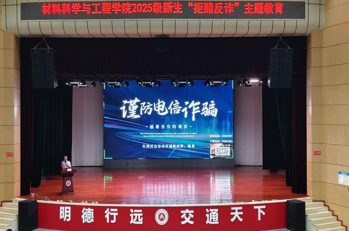 重庆双福派出所副所长陈希为学院2025级全体新生开展“拒赌反诈”主题教育讲座。