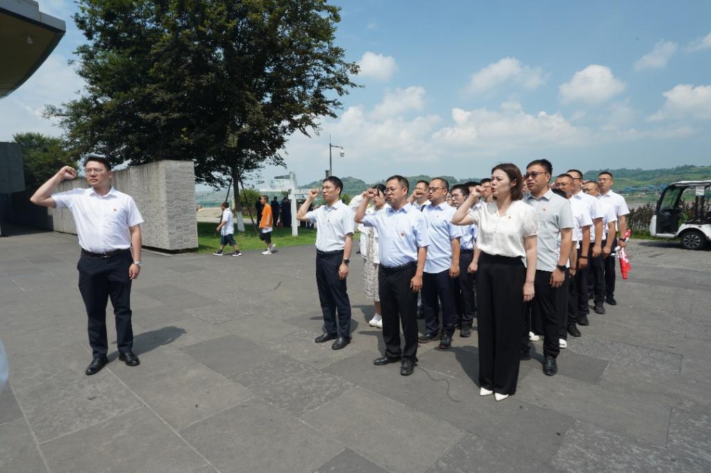参观结束后,在李庄抗战文化博物馆门前,全体党员干部统一着装,佩戴党徽,高举右拳,重温入党誓词,体悟初心使命,强化责任担当。“我志愿加入中国共产党,拥护党的纲领,遵守党的章程……随时准备为党和人民牺牲一切,永不叛党。”