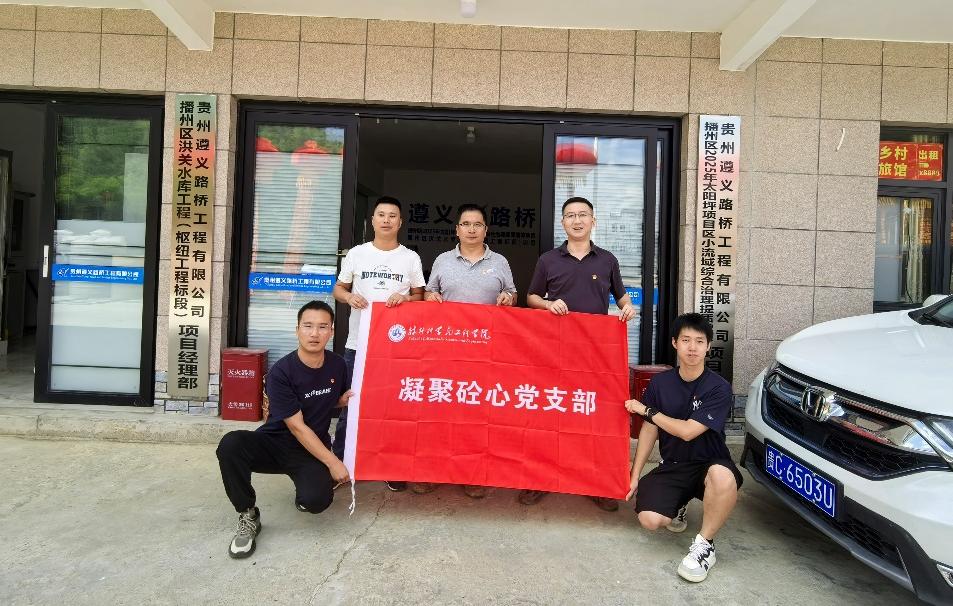 2025年8月24日,凝聚砼心党支部书记黄诗渊副教授带领研究生团队,赴遵义市播州区洪关水库土石坝黏土心墙施工现场,围绕“多雨地区黏土心墙碾压施工质量控制关键技术”开展专题调研。调研期间,支部师生首先与贵州遵义路桥工程有限公司洪关水库工程项目部总工程师陶体盛高工及现场技术骨干进行了座谈,双方就高含水率条件下心墙黏土碾压施工的技术难点深入交换意见,探讨了可行的解决方案与技术路径。随后,在项目部人员的陪同下,团队实地考察了黏土料场及关键的心墙碾压试验场地,详细了解了料源特性与碾压工艺参数,实现了理论知识与工程实践的紧密结合,为后续相关研究积累了宝贵的工程经验。