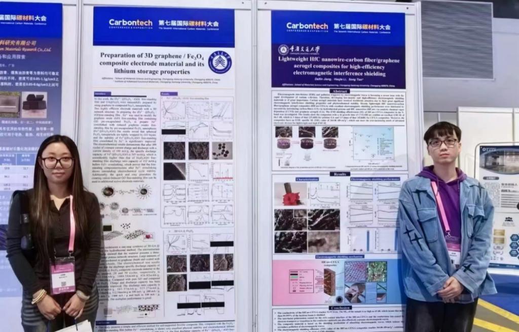 我校2022级研究生蒋达鑫、张雨萱和罗城城做了大会学术海报交流。参会师生认真听取了石墨烯、碳碳复合材料、碳基电磁屏蔽材料研究相关的专家报告与行业发展,并积极与各参会代表交流讨论,思想碰撞中开阔研究视野的同时拓展了研究思路。