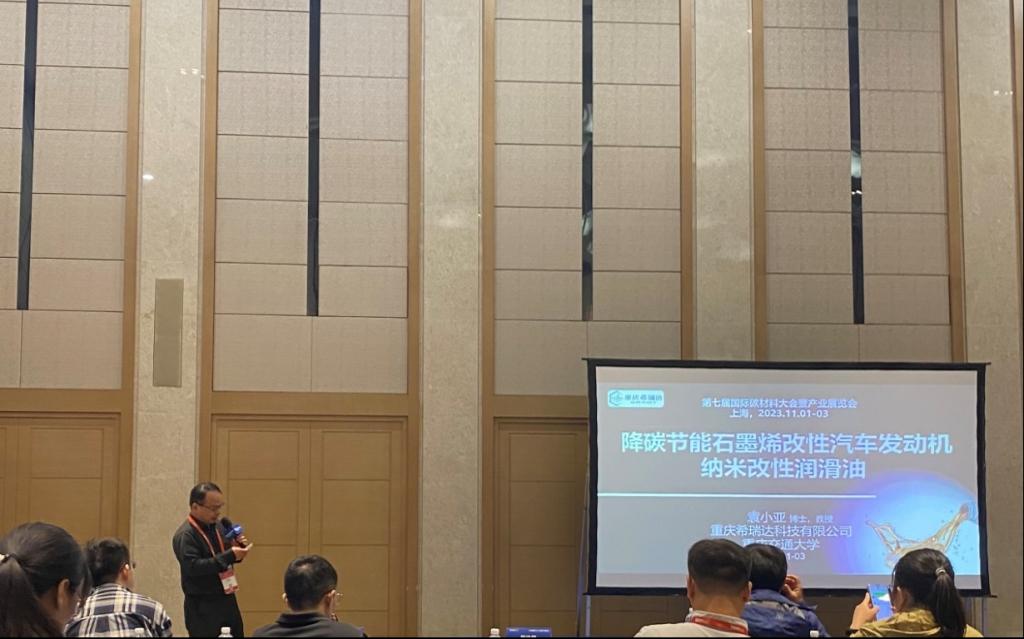 第七届国际碳材料大会以“创新·转型·布局产业新赛道”为主题,致力于打造行业风向标,汇聚了近200位报告嘉宾、400家参展商,逾50件新品在展会现场发布,超过30000名专业观众参会观展。大会分为八个主题论坛进行专家报告。我校袁小亚教授受邀在“碳纳米论坛”做题为《降碳节能石墨烯改性汽车发动机纳米改性润滑油》的会议报告,汇报了研发的石墨烯润滑油添加剂可控制和改善汽车尾气排放,助力了交通领域双碳建设。