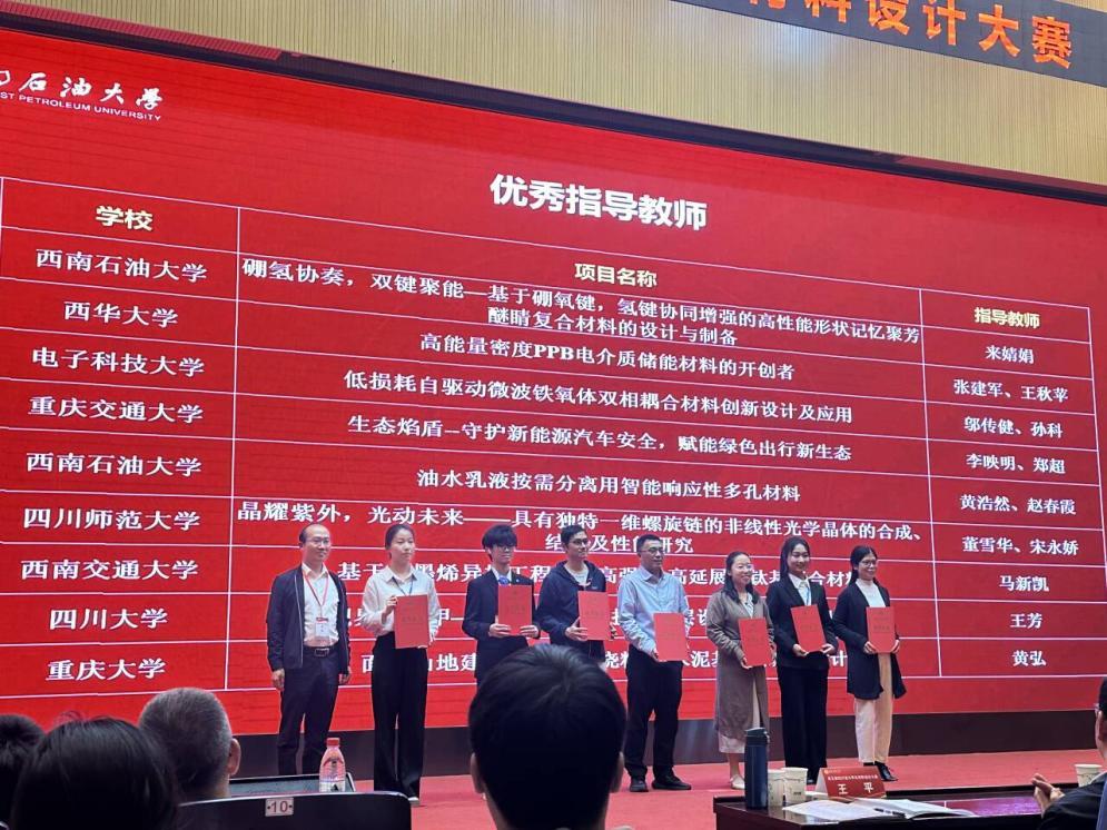 10 月 17 日至 19 日,第五届四川省大学生材料设计大赛在西南石油大学新都校区圆满落幕。本次大赛由四川省教育厅、西南石油大学、四川大学主办,四川省金属学会、西南石油大学承办。我校受邀组建队伍,在伟德国际victor·1946源自能源化学系郑超副教授的带领下赴成都参赛。