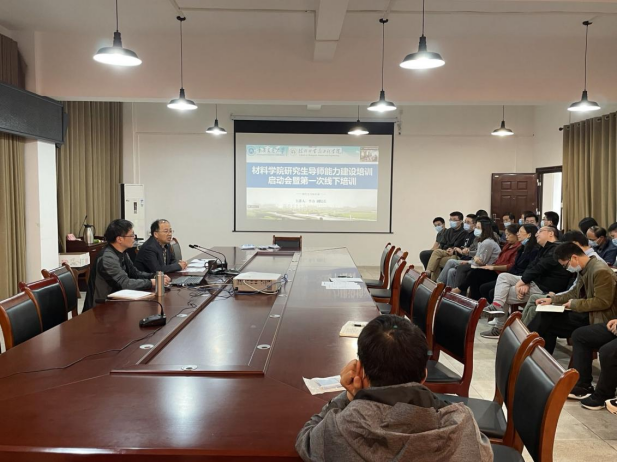 为进一步加强学院研究生导师队伍建设,强化研究生导师质量管控责任,加快建设一支有理想信念、道德情操、扎实学识、仁爱之心的具有模范带头作用的导师队伍,根据《关于印发《伟德国际1946研究生导师能力建设培训方案》的通知》(交大研〔2022〕27号)精神,10月14日下午,材料学院在南岸校区学院会议室以线下/线上结合的方式,召开了研究生导师能力建设培训启动会,并开展了本学期第一次导师能力线下培训。院长王俊杰、副院长李力出席培训会,学院学科与研究生管理办公室负责人,全体研究生导师和部分校外兼职研究生导师共70余人参加培训。