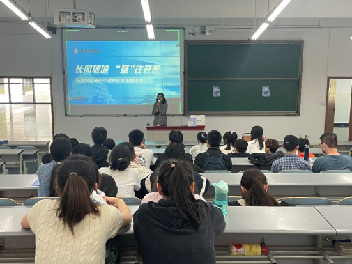 随后,校招项目负责人李子威通过播放宣传片、PPT展示、面对面交流问答等方式向同学们介绍了公司的概况、人员需求以及申请流程等。长基供应链基团总部位于上海,主要服务于集成电路制造、显示技术、生物医药、医疗器械、新能源汽车等行业,经过近年来的高速增长,已经成为行业前三名的龙头企业。本次招聘会提供的工作岗位丰富,工作地点在安徽马鞍山,工作环境佳,为我院应届毕业生们提供了良好的工作机会和职业发展通道。