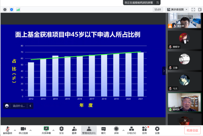 “材料·青春之约”系列讲座为学院师生搭建起了拓宽视野、分享经验的学术平台,助推学院科研事业的高质量发展,也是学院教师“同心抗疫、共克时艰”的重要举措。此次讲座杨鸣波教授通过国基项目申请案例为青年教师进行了系统的辅导讲解和答疑解惑,对如何撰写好申报书进行了全面分析。杨教授的讲座进一步提升了学院国基项目积极申报的氛围,有助于推动学院2023年国基申报工作。