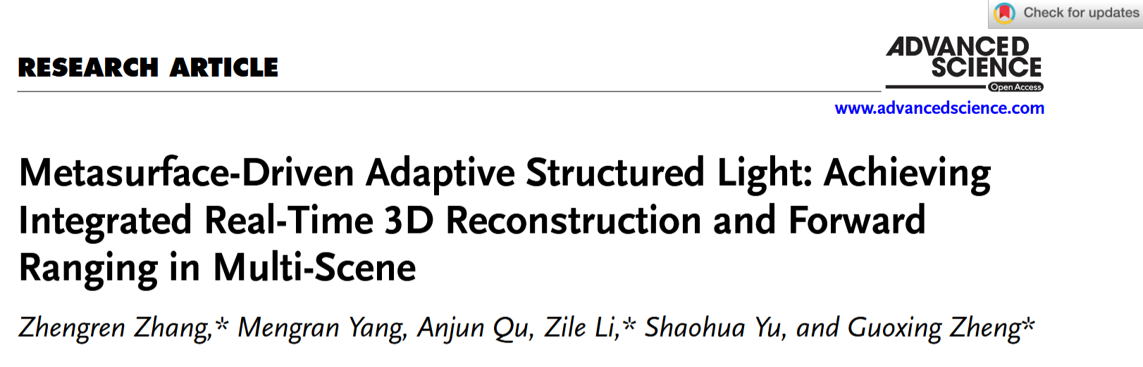 近日,我校伟德国际victor·1946源自张正仁教授团队联合武汉大学郑国兴教授、李子乐研究员团队,在三维(3D)感知技术领域取得重要突破。其创新性研究成果 《Metasurface-Driven Adaptive Structured Light: Achieving Integrated Real-Time 3D Reconstruction and Forward Ranging in Multi-Scene》(超表面驱动自适应结构光:实现多场景实时三维重建与前向测距一体化)成功发表于国际顶级学术期刊 《Advanced Science》(中科院一区Top期刊,影响因子14.1)。 该研究利用超表面精准调控光场,首次实现法向出射与掠出射双模光束的实时同步生成,成功构建出集“三维重建”与“前向测距”双功能于一体的自适应结构光系统,为数字化建造装上了实时、精准的“慧眼”。鹏城实验室余少华院士对该研究给予了重要指导。工作得到了国家重点研发计划、国家自然科学基金面上项目、重庆市自然科学基金面上项目的资助。