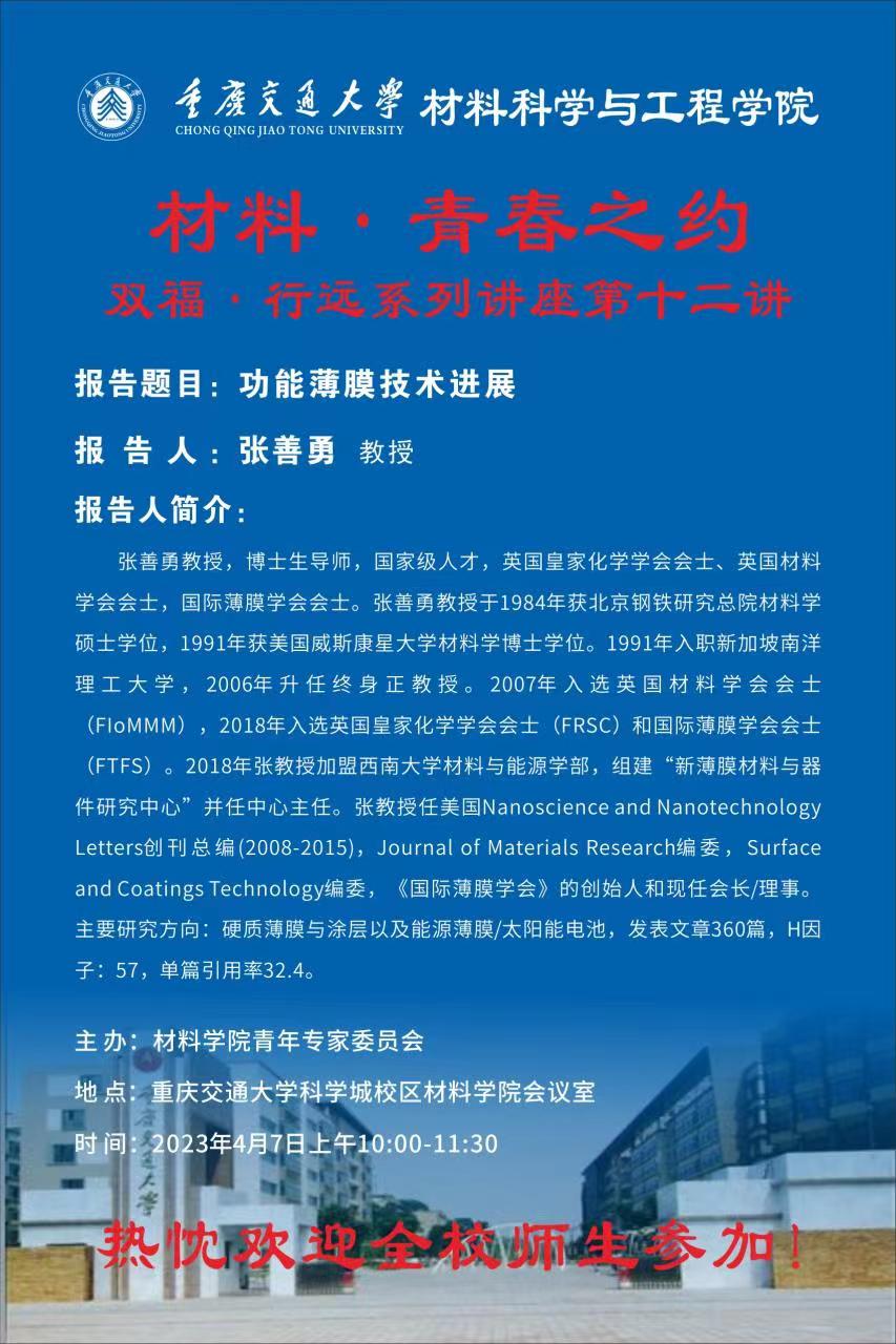 材料·青春之约系列讲座:功能薄膜技术进展