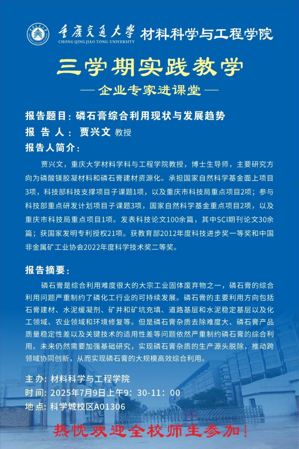 三学期实践教学-企业专家进课堂:磷石膏综合利用现状与发展趋势