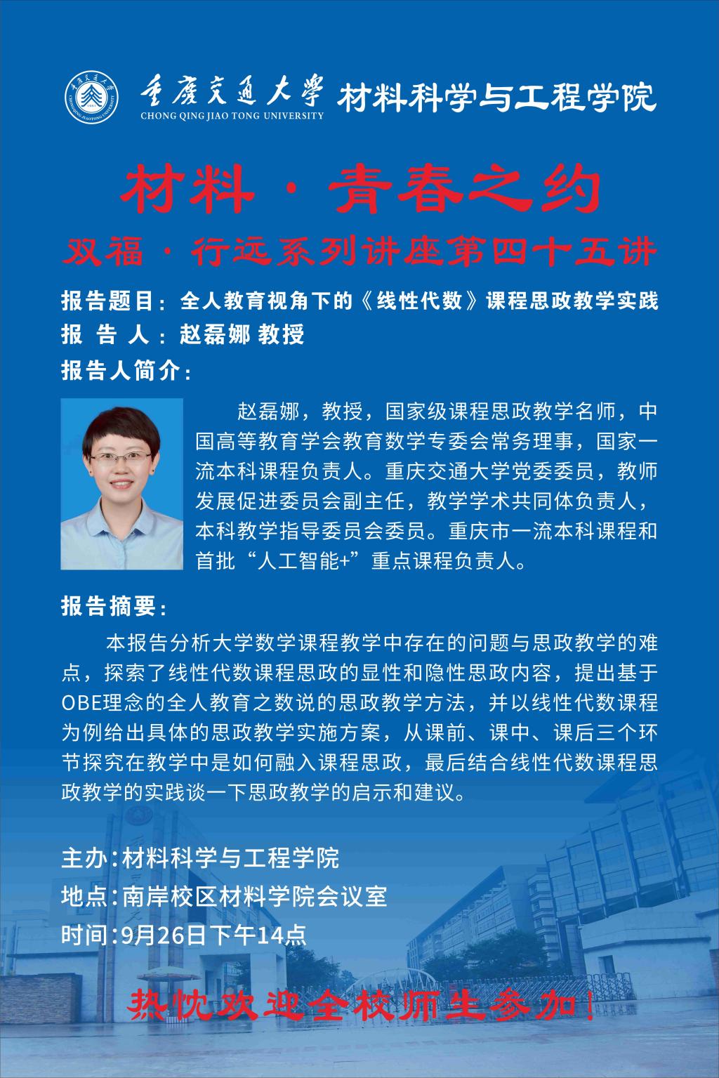 材料·青春之约系列讲座:全人教育视角下的《线性代数》课程思政教学实践